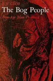 In the third chapter, "Bog People in Denmark", Glob notes that there have been over 150 bog bodies found in Denmark, and proceeds to provide a number of examples including Haraldskær Woman and the Borremose bodies, in doing so highlighting the similarities that exist between them. Noting that many of these were discovered in the 19th and early 20th centuries, he explains that little can be known about most of them because methods of archaeological investigation and conservation were unavailable at the time.[3] Chapter four, "Bog People in Other Countries", explores similar bog bodies which have been discovered in neighbouring Germany and the Netherlands, such as Windeby I, making reference to the cataloging project undertaken by the German archaeologist Alfred Dieck.[4]