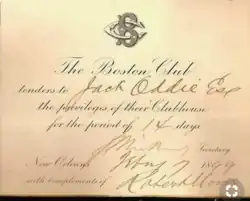 - ^ Officers, Members, Charter, and Rules of the Boston Club of New Orleans. Pub. by the Boston Club. 1919. pp.40