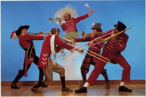 The Brass Band performing "Sabre Dance" by Aram Khachaturian. Performers left to right - The Captain, Jimby, Loois Tooloose, Fritz Frumheimer, Buford