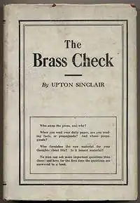 The Brass Check is a muckraking exposé of American journalism by Upton Sinclair published in 1919. It focuses mainly on newspapers and the Associated Press wire service, along with a few magazines. Other critiques of the press had appeared, but Sinclair reached a wider audience with his personal fame and lively, provocative writing style.[1] Among those critiqued was William Randolph Hearst, who made routine use of yellow journalism in his widespread newspaper and magazine business.