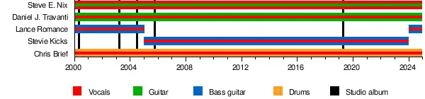 - Lance Romance – bass, vocals (2000–2004, 2024–present)
