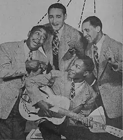 The Brown Dots were an American vocal group initially formed in late 1944, when second tenor Ivory "Deek" Watson (b. 18 July 1909, Mounds, Illinois - d. 4 November 1969, Washington, DC) left the Ink Spots.[1] He immediately put together a competing Ink Spots group consisting of lead tenor Joe King, bass Jimmy Gordon, and an unknown baritone. By late January 1945, a lawsuit brought by the Ink Spots caused Deek Watson to claim that he would form a new group based on a "completely new idea". This new idea was simply to change their name to the Brown Dots and to sound as much like the Ink Spots as possible (although the Brown Dots employed more extensive harmonies). At this time, the unknown baritone left, to be replaced by baritone/guitarist William "Pat" Best.