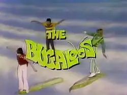 The Bugaloos is an American children's television series, produced by brothers Sid and Marty Krofft, that aired on NBC on Saturday mornings from 1970 to 1972.[1] Reruns of the show aired in daily syndication from 1978 to 1985 as part of the "Krofft Superstars" package with six other Krofft series. The show features a musical group composed of four British teenagers in insect-themed outfits, constantly beset by the evil machinations of the talent-challenged Benita Bizarre, played by comedian Martha Raye.[2]