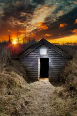 The Caves of Hella (Icelandic pronunciation: [ˈhɛtla]; also known as the Caves of Ægissíða [ˈaijɪsˌsiːða]) are a series of ancient man-made sandstone caves located at the farm Ægissíða on the bank of the river Ytri-Rangá, just across from the village Hella, in the southern part of Iceland. Through the past centuries the caves have been used by Icelandic farmers as sheep sheds, barns and, food storage.[1] Nobody knows for certain who made them and for what purpose. However, throughout the centuries the people of Ægissíða have said the caves were built before the Viking settlement, most likely by Celtic monks.