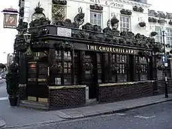 The Churchill Arms is a public house at 119 Kensington Church Street on the corner with Campden Street, Notting Hill, London. There has been a pub on the site since at least the late nineteenth century. Previously known as the "Church-on-the-Hill", the pub received its current name after the Second World War.[1] It is known for its exuberant floral displays, and extravagant Christmas displays in the winter,[2] and has been described as London's most colourful pub.[3]