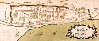 The Citadel is in this map of Montreal, 1749. Inside the walls, the long rectangle in relief, at north-east corner