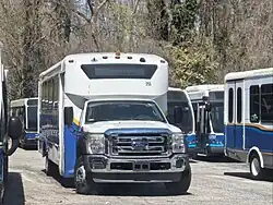 The 55 bus fleet consists of 30 feet and 35 feet buses and ParaTransit bus. Buses 201–210, 240, 301-305 are 35 ft buses, Buses 211–233, 306-310 are 30 ft buses, and 241-251 are small (ParaTransit) buses.