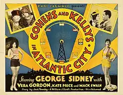 The Cohens and the Kellys in Atlantic City is a 1929 American sound part-talkie comedy film directed by William James Craft and starring George Sidney, Vera Gordon and Mack Swain. In addition to sequences with audible dialogue or talking sequences, the film features a synchronized musical score and sound effects along with English intertitles. The soundtrack was recorded using the Western Electric sound-on-film system. The film is the third entry in the series which began with The Cohens and Kellys, inspired by a play by Aaron Hoffman.[1] Location shooting took place in Atlantic City. Originally shot as a synchronized film without dialogue, some talking sequences were later added at Universal Studios.[2]