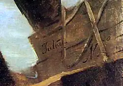 On the other side of the argument Manuela Mena refused to definitively conclude that the letters A. J. were the signature of Asensio Juliá, one of the main arguments supporting the attribution of the painting to the Valencian painter.[22] In March 2009, Nigel Glendinning and Jesusa Vega published an article in the academic journal Goya entitled "A failed attempt to delist The Colossus by the Prado Museum?"[23] in which they question the methodology and arguments of Mena's report:[24][25]