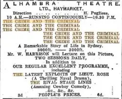 - ^ "Alhambra Theatre". The Sydney Morning Herald. No. 23, 121. New South Wales, Australia. 19 February 1912. p. 4. Retrieved 11 December 2023 – via National Library of Australia.
