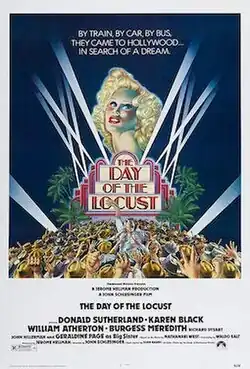 The Day of the Locust is a 1975 American satirical historical drama film directed by John Schlesinger. It stars Donald Sutherland, Karen Black, William Atherton, Burgess Meredith, Richard Dysart, John Hillerman, and Geraldine Page.