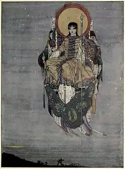 "Honour has come back, as a king, to earth," illustration by Harry Clarke in The Year's at the Spring, 1920.
