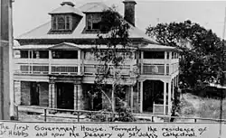 When Sir George Bowen was appointed the first Governor of Queensland in 1859, Government House was still being planned. As an interim measure, Adelaide House was rented by the government for £350 per year, as the Governor's residence. On 10 December 1859, the proclamation creating the colony of Queensland was read by civil servant Abram Orpen Moriarty on the first floor balcony of Adelaide House where he was sworn in as Governor by Judge Alfred Lutwyche. On the completion of Government House in lower George Street in 1862, Dr Hobbs returned with his family to Adelaide House.[1]