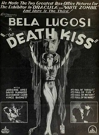 The Death Kiss is a 1933 American pre-Code mystery film starring David Manners as a crusading studio writer, Adrienne Ames as an actress, and Bela Lugosi as a studio manager. The thriller features three leading players from the previous year's Dracula (Lugosi, Manners, and Edward Van Sloan), and was the first film directed by Edwin L. Marin.