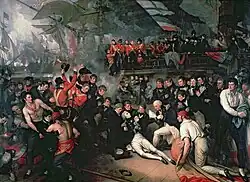 The Death of Nelson, 21 October 1805 is an 1807 painting by Arthur William Devis portraying the death of Horatio Nelson at 16:30 on 21 October 1805, below decks on his flagship HMS Victory during the Battle of Trafalgar. It is the collection of the National Maritime Museum, Greenwich.