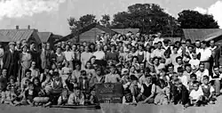 In the early spring of 1953, raging seas brought widespread flooding and devastation to many parts of the Lincolnshire coast, including Skegness. There was little damage to the camp buildings thanks mainly to the sandbag walls hastily constructed by the miners bussed in overnight from Derbyshire. Warnings were given on Friday evening and by Saturday the North Derbyshire NUM Treasurer, Herbert Dilks, had organised busloads of more than 100 men from the three Markham Collieries to help save the camp.[8] The camp provided temporary accommodation for refugees following the Hungarian uprising in 1956. By Christmas of that year the camp housed around 900 male refugees, many of them recruited in Vienna by the National Coal Board (NCB) for the sum of £8 and 6d per week. A member of staff, Jean Ellis, described Christmas Day lunch at the camp in 1956 as being a very moving occasion as the refugees rose to their feet, en masse, to sing the Hungarian National Anthem.[9]