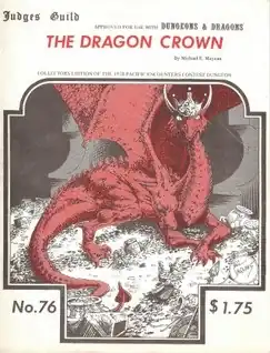 The Dragon Crown is an adventure intended for 6 player characters of experience levels 1st-4th. The characters must enter a dungeon to recover a crown belonging to a Red Dragon who threatens to eat them if they fail. The dungeon has 26 rooms, each of which has a short description and is keyed.[2]