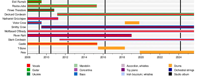 • Nathaniel Grizzlejaw – concertina, vocals (2008–2011)