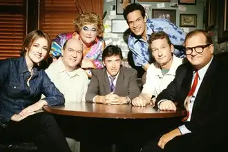 After its sixth season, ABC and Warner Bros. Television negotiated to keep the series on through the 2003-04 television season, which would place it in its ninth season.[10] However, in its seventh season, The Drew Carey Show experienced a dramatic ratings drop, as did several other ABC series. A schedule move by ABC for the eighth season resulted in even worse ratings, falling out of the Top 100. At midseason, ABC placed the series on hiatus, and attempted to get out of the contract with Warner Bros. Television. When they were unable to, ABC finished the eighth season in the summer, and decided to burn off the ninth and final season during the summer of 2004.[11] The series finale was viewed by a little over 5 million viewers.[12]