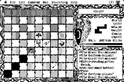 Progress through the dungeon is hindered by monsters who, depending on the circumstances, have varying levels of hostility towards the character. The character must also eat periodically to avoid starvation. The monsters become more powerful and resistant to attack as the player progresses deeper into the dungeon.