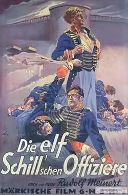 The Eleven Schill Officers (German: Die elf Schillschen Offiziere) is a 1932 German historical film directed by Rudolf Meinert and starring Friedrich Kayßler, Hertha Thiele, and Heinz Klingenberg. It was a remake of a 1926 silent film of the same name which had also been directed by Meinert. The film depicts the failed 1809 uprising of Prussian soldiers led by Ferdinand von Schill against the occupying French. It focuses in particular on eleven of Schill's officers who were executed by the French at Wesel.[1] The film was a Prussian film, part of a wider trend of German historical films made during the Weimar Era and set in the Napoleonic Era.[2]