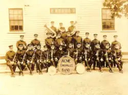 The band initially consisted of 16 men[3] who were employed with the Acme Wagon Works company. During the Industrial Revolution, it was common for employers to have their employees play in a part of an eponymous community band.[3][8]