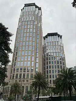 The Enterprise Center is an office skyscraper located in Makati, Philippines.[10] It is owned and developed by KSA Realty Corporation, a joint venture of the Kuok Group (majority shareholder), ING, and A. Soriano Corporation (ANSCOR).[11] The taller Tower I of the complex stands at 171.9 metres (564 feet) and is currently the 74th tallest building in the Philippines.[7]