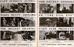 - ^ Cooper, J. Gordon, 1895-1939, (direction.); Van, Wally, 1880-1974, (production.); McCardell, Roy L. (Roy Larcom), b. 1870, (writing.); Leonard, Benny, 1896-1947, (cast.); Holmes, Stuart, 1884-1971, (cast.); Dwyer, Ruth, 1898-1978, (cast.); Shotwell, Marie, d. 1934, (cast.); Marstini, Rosita, 1894-1948, (cast.); King, Leslie, 1876-1947, (cast.); Randall, Bernard, 1884-1954, (cast.); Ascher's Enterprises; Hallmark Pictures Corporation; AFI/Nichol (Donald) Collection (Library of Congress) (1920), The evil eye. Episode no. 1, Below the deadline, Hallmark Pictures Corporation, retrieved June 9, 2018