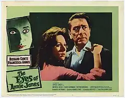 The Eyes of Annie Jones is a 1964 American-British drama film directed by Reginald Le Borg and starring Richard Conte, Francesca Annis and Joyce Carey.[3] It was written by Louis Vittes. The film tells the story of a sleepwalking young woman involved with a murder.[4]