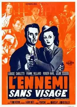 The Faceless Enemy (French: L'ennemi sans visage) is a 1946 French crime film directed by Robert-Paul Dagan and Maurice Cammage and starring Louise Carletti, Frank Villard and Jean Tissier.[1] It was based on the novel of the same title by Stanislas-André Steeman.[2] It featured his long-running detective Inspector Wens. The film's sets were designed by the art director Marcel Magniez.