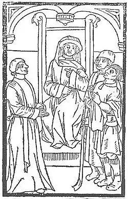 La Farce de maître Pathelin (in English The Farce of Master Pathelin; sometimes La Farce de maître Pierre Pathelin, La Farce de Pathelin, Farce Maître Pierre Pathelin, or Farce de Maître Pathelin) is a 15th century French farce of disputed origin. The earliest accounts of this play can be traced back to as early as 1457 to 1470, with the 1st printed edition (published anonymously) dated to 1485; However the date is uncertain as there is no known playwright. It is sometimes attributed to Guillaume Alexis,[1] and even to François Villon.[2] According to the medievalist Bruno Roy, the most likely author is Triboulet, the jester and comedy playwright of René of Anjou.[3]