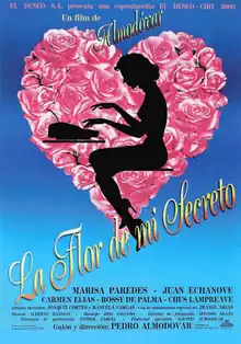 The Flower of My Secret (Spanish: La flor de mi secreto) is a 1995 drama film written and directed by Pedro Almodóvar. It was selected as the Spanish entry for the Best Foreign Language Film category at the 68th Academy Awards, but it was not selected as one of the final five nominees.[2][3]