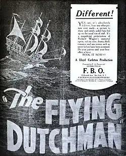 The Flying Dutchman is a 1923 American silent drama film directed by Lloyd B. Carleton and starring Lawson Butt, Nola Luxford and Ella Hall.[1] It is inspired by the legend of The Flying Dutchman.