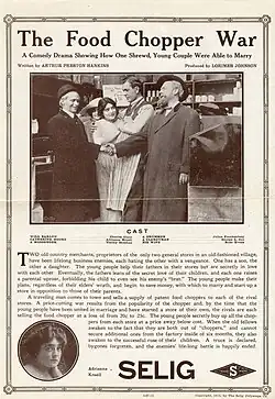 The Food Chopper War is a 1913 American silent film drama produced by Lorimer Johnson. The film stars Charles Clary, Adrienne Kroell, Timmy sheehan and Julius Frankenberg. The film status is uncertain but a release flier survives which is now at the Margaret Herrick Library at the Academy of Motion Pictures Arts and Sciences, it was part of the Charles G. Clarke collection.