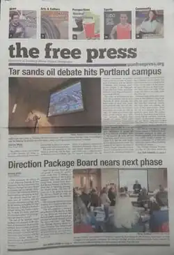 The Free Press is the official campus newspaper of the University of Southern Maine. It was first published in 1972. It publishes a print edition weekly during the academic year, equaling roughly 22 editions a year. The newspaper has a circulation of 3,000 and prior to 2023 published daily on its website.