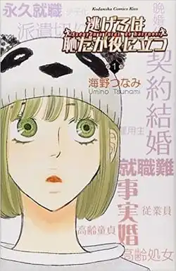 The Full-Time Wife Escapist (逃げるは恥だが役に立つ, Nigeru wa Haji da ga Yaku ni Tatsu; lit. Running away is shameful, but useful) is a Japanese romance josei manga series written and illustrated by Tsunami Umino. The original title is from a Hungarian proverb szégyen a futás, de hasznos, Hungarian pronunciation: [ˈse̝ːɟɛnɒ ˌfutɑ̈ːʃ ˈhɒsnoʃ].[1] It was published by Kodansha, with serialization in Kiss magazine since November 9, 2012[2] and eleven volumes released across the whole series timeframe.[3]