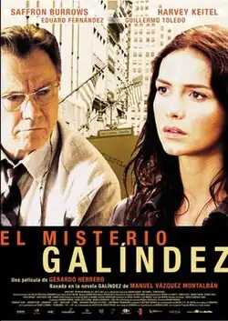 The Galíndez File (Spanish: El misterio Galíndez, lit. 'The Galíndez Mystery') is a 2003 drama film directed by Gerardo Herrero and starring Saffron Burrows, Harvey Keitel, Eduard Fernández and Guillermo Toledo. It is based on Manuel Vázquez Montalbán's 1991 novel Galíndez.[1][2][3]