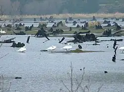 The Gearagh is primarily of interest and importance due to its rich and rare diversity of wildlife, and it represents the only extant extensive alluvial woodland in Western Europe.[16] It hosts numerous rare plant species including marsh marigold, meadowsweet and nightshade,[4] and 62 species of moss and liverwort. While oak and ash trees once pre-dominated, today there are a number of willow and alder trees on the higher islands and inlets.[17] It hosts a large diversity of birds and wildfowl and attracts both summer and winter migrants. Examples include mallards, wigeon, Greylag geese, grey herons and coots.[4] It also hosts Atlantic salmon and the near extinct freshwater pearl mussel. The area is protected under the international Ramsar Convention.