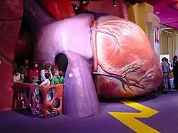 The Giant Heart exhibit, originally called the "Engine of Life" exhibit, is one of the most popular and notable exhibits at the Franklin Institute.[1] Built in 1953, the exhibit is roughly two stories tall and 35-feet in diameter. A walk-through exhibit, visitors can explore the different areas of the heart.[2]
