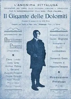 The Giant of the Dolomites (Italian: Il gigante delle Dolomiti) is a 1927 Italian silent adventure film directed by Guido Brignone and starring Bartolomeo Pagano, Aldo Marus and Elena Lunda.[1] It was the last in a series of silent films featuring the peplum hero Maciste, but the character was later revived in the 1960s.