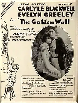 The Golden Wall is a 1918 American silent comedy drama film directed by Dell Henderson and starring Carlyle Blackwell, Evelyn Greeley and Johnny Hines. It was shot at Fort Lee, New Jersey.[1]