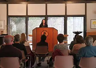 Stewart giving a lecture on "The Good News Club" in Monterey, California, in 2013