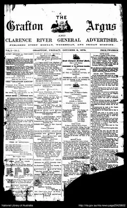 1. ^ a b "The Grafton Argus and Clarence River General Advertiser". Trove Digitised Newspapers. National Library of Australia. Retrieved 8 March 2018.