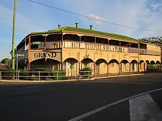 1. ^ a b c d e f g h i j k l m n o p q r s t u v w x y z aa ab ac ad ae af ag ah ai aj ak al am an ao ap aq ar as "The Grand Hotel (entry 602608)". Queensland Heritage Register. Queensland Heritage Council. Retrieved 1 August 2014.