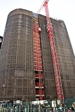 Gonzalez issued her final approval for demolition in May 2014, and the process began the following month.[74] Plans to demolish the Harmon by implosion were scrapped due to its proximity to other structures, including CityCenter's shopping mall, Crystals.[75] Instead, the tower was dismantled floor-by-floor,[9][75][8] at a cost of $11.5 million.[74][76]
