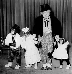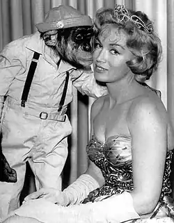 The Hathaways is a 26-episode situation comedy, which aired on ABC from October 6, 1961,[1] to August 31, 1962,[1][2] or March 30, 1962, starring Peggy Cass and Jack Weston as suburban Los Angeles "parents" to a trio of performing common chimpanzees. Weston portrayed Walter Hathaway, a flabby real estate agent. Cass is his zany bride Elinore, "mother" and booking agent to the Marquis Chimps, named Candy, Charlie, and Enoch. The chimps had earlier appeared on CBS's The Ed Sullivan Show, a Jack Benny special in 1959 and several commercials in 1960.[3] Executive producer Robert Sparks decided to develop a series focusing on the chimpanzees after he saw them on the Benny program.[4]