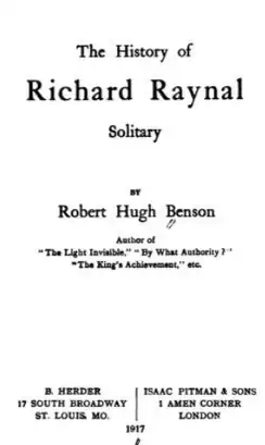 The History of Richard Raynal, Solitary is a historical novel by Robert Hugh Benson, first published in 1906. It was republished in 1956 under the title Richard Raynal, Solitary, with an introduction by Evelyn Waugh.