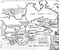 The History of the World (originally The Historie of the VVorld / In Five Bookes) is an incomplete work of history by Sir Walter Raleigh, begun in about 1607 whilst the author was imprisoned in the Tower of London, and first published in 1614. It covers the course of human history from Genesis to the conquest of Macedon by Rome.[1] Raleigh intended to write more volumes relating the rise and fall of the great empires, but his release in 1615, his expedition to Guiana, and his execution in 1618, prevented the accomplishment of his plan.[2] According to Edmund Gosse, "This huge composition is one of the principal glories of seventeenth-century literature, and takes a very prominent place in the history of English prose."[3]