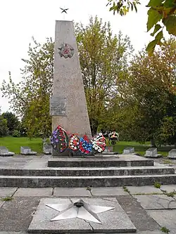 Two monuments and a memorial plaque at Bronaya Gora.