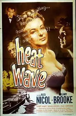The House Across the Lake (U.S. title: Heat Wave) is a 1954 British film noir crime film directed and written by Ken Hughes and starring Alex Nicol, Hillary Brooke, Sid James and Susan Stephen. Director Ken Hughes not only directed the film, he also was hired to write the screenplay based on a novel he wrote in 1952. Jimmy Sangster was assistant director, J. Elder Wills was the art director and Phil Leakey did Makeup.[3][4] It was produced as a second feature[5] by Hammer Films. It was released in the United States by Lippert Pictures. Filming began August 10, 1953 and ended on September 4, 1953. It was trade shown on May 26, 1954 at Studio One. The film was released first in the US in May, 1954 by Lippert Pictures (retitled Heat Wave), then later in the UK on June 21, 1954 by Associated British-Pathe.